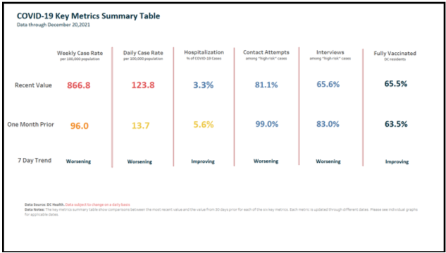 “The District’s reported data for December 20, 2021 includes 1,155 new positive coronavirus (COVID-19) cases, bringing the District’s overall positive case total to 76,137.