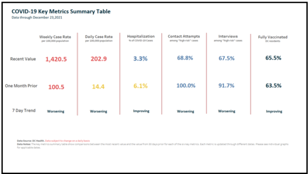 “The District’s reported data for December 23-26, 2021 includes 6,588 9,200 new positive coronavirus (COVID-19) cases, bringing the District’s overall positive case total to 88,765.