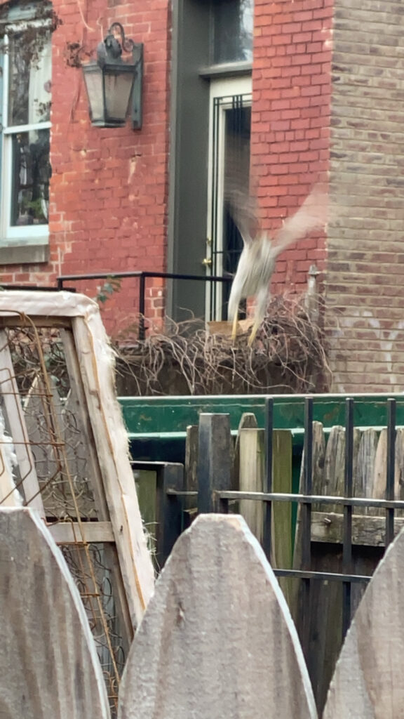 Thanks to Allen for sending: “Caught these behind the 1800 block of 13th street NW last spring. Prior to flight up 4 stories to capture a rooftop perched pigeon. One of many pigeons that no longer come back behind 13th street. It snapped its neck in a fury of vertical flight maneuvers then dropped the body on a neighboring roof and continued hunting.”