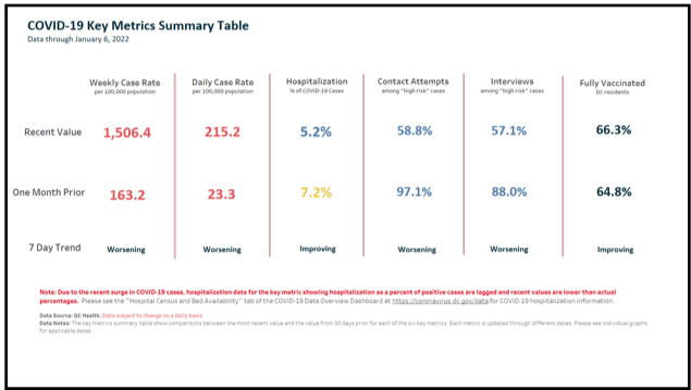 “The District’s reported data for January 6, 2022 includes 1,928 new confirmed positive coronavirus (COVID-19) cases, bringing the District’s overall confirmed positive case total to 110,040.