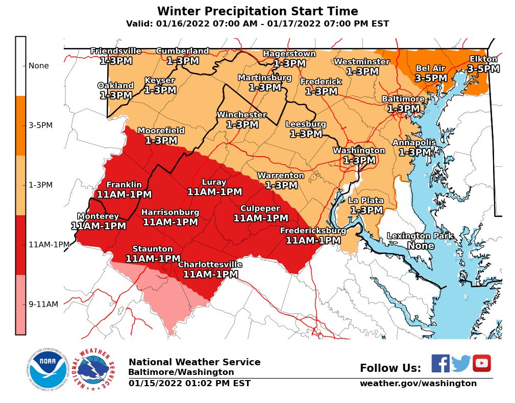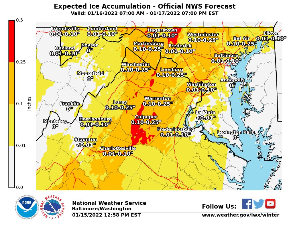 “Here is our latest forecast updates for Sunday and Sunday night, including current headlines, most likely snowfall, most likely ice, and start time.”