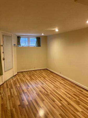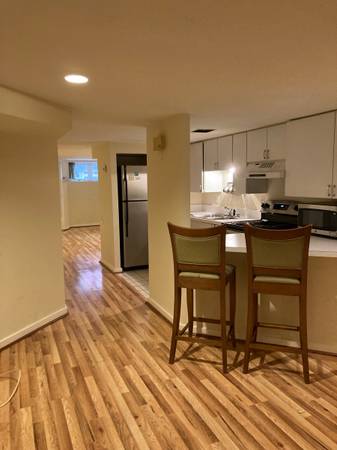 700 square foot English basement has great light, stainless steel appliances (dishwasher and refrigerator), oven/stove, new AC/ heating, washer and dryer.