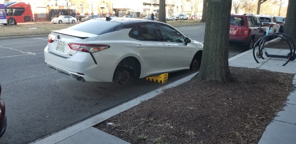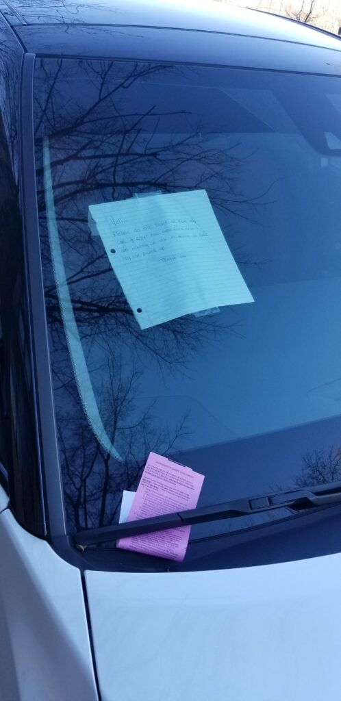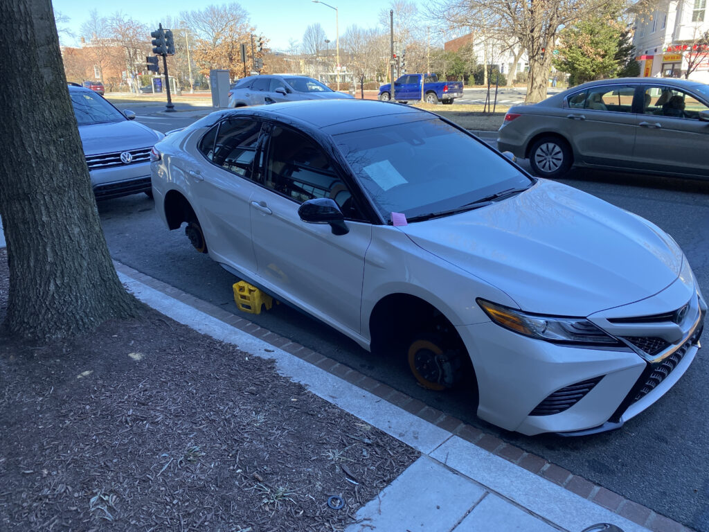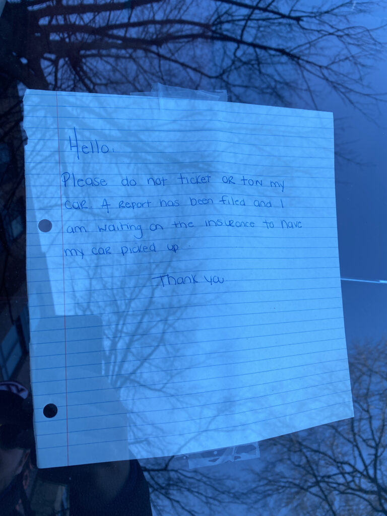 Thanks to Joseph (and Christy) for sending from Hill East: “Outside The Roost on 14th and Penn SE. despite the note in the windshield you’ll see the city showed no mercy and ticketed anyways.”