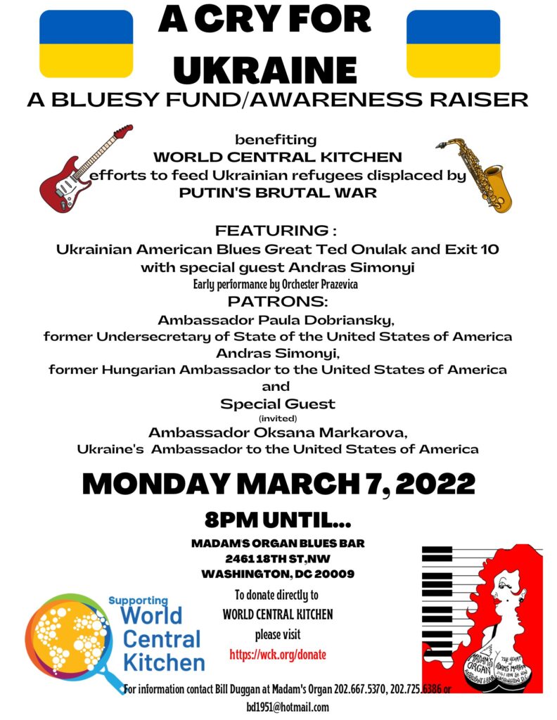Come out to support a good cause while enjoying a live performance by Ukrainian American blues artist Ted Onulak and his band Exit 10!