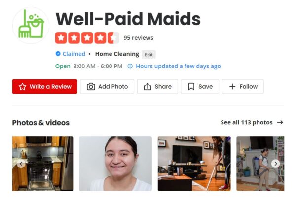 But what you should also know? Well-Paid Maids does a thorough, top-notch job cleaning your home with sustainable, green products. That’s why customers have rated it 4.9 stars on Google and 4.5 stars on Yelp.