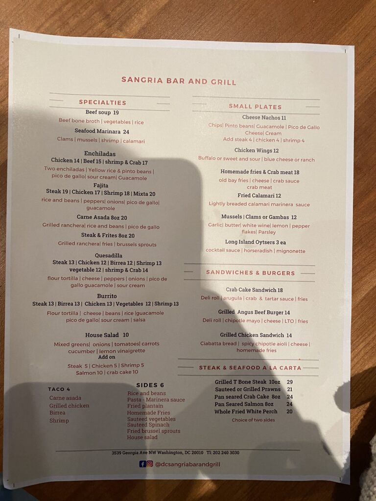 Stopped by Sangria Bar and Grill (Georgia and Newton NW) last night. The bartender (owner?), Marvin, was extremely nice and helpful. I had three of the four tacos which were all fantastic. My friend also really liked their quesadilla. They’ve only been open for three weeks and I was told they are still adjusting the menu, but people should definitely check them out.