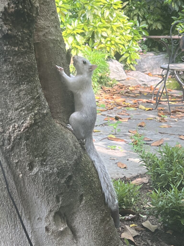 Thanks to Craig for sending: “Bob (the cat) spotted the white whale in our yard on the Hill!”