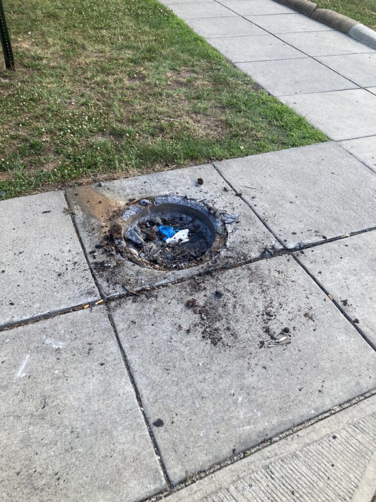 Thanks to Erin for sharing: “More trash cans being removed for some reason? This one at Quincy and Kansas. What’s the deal?