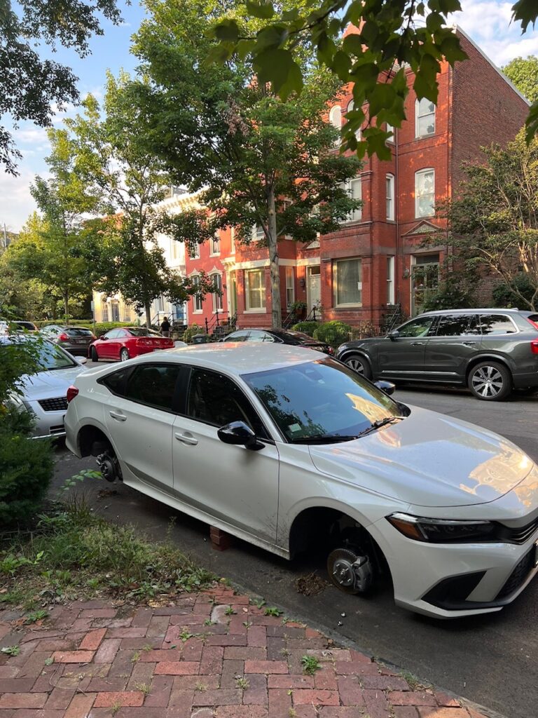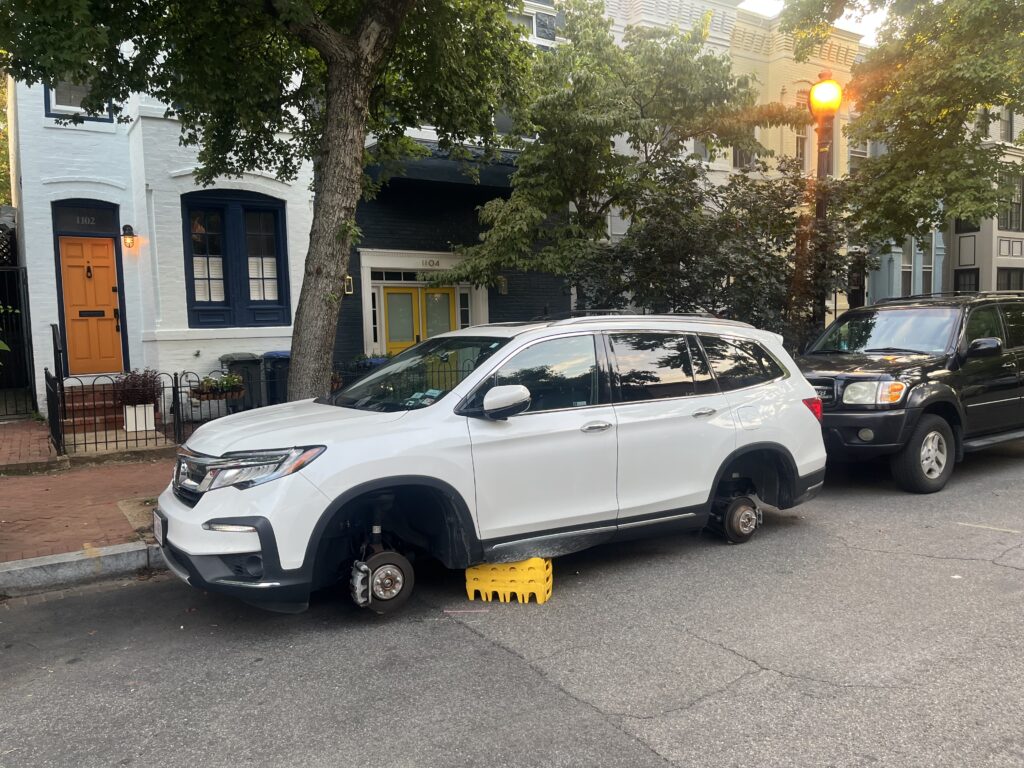 It had been 14 days since our last stolen wheels report(s). You can see some MPD suggestions on ways to prevent a Helluva Way to Wake Up here. You can read a Witness Describing a Wheel Theft here.