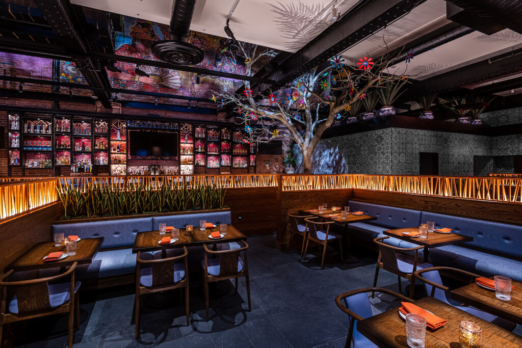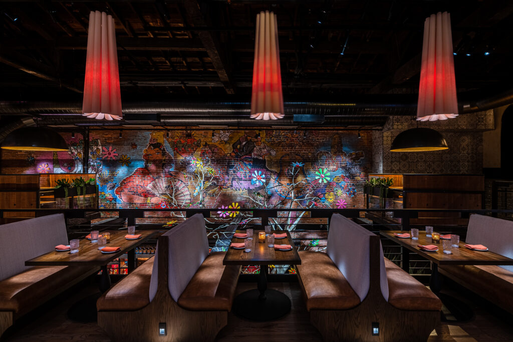 Yesterday we saw the colorful exterior at the newly opened Mi Vida. Thanks to Fin for sending a couple of cool shots from the inside last night:
