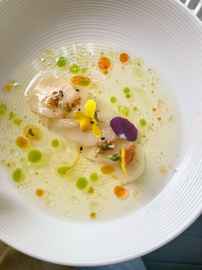 Strawberry Zhoug, Orange Blossom, Crème Fraiche, Nectarines, Dill Oil