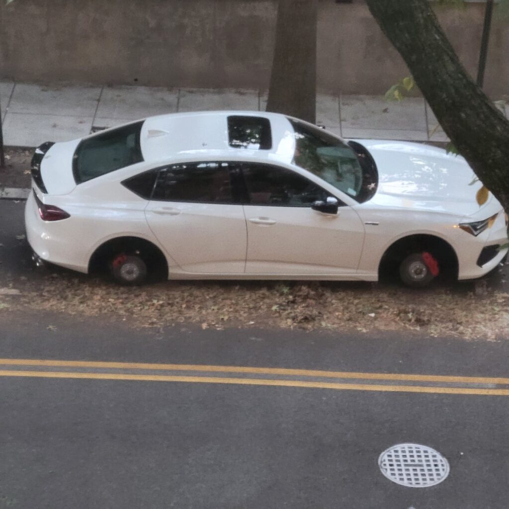 It had been 4 days since our last stolen wheels report(s). You can see some MPD suggestions on ways to prevent a Helluva Way to Wake Up here. Others victims have recommended Rimgard. You can read a Witness Describing a Wheel Theft here.