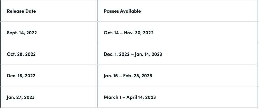 The museum will release individual passes for six-week periods at noon ET on the following dates: