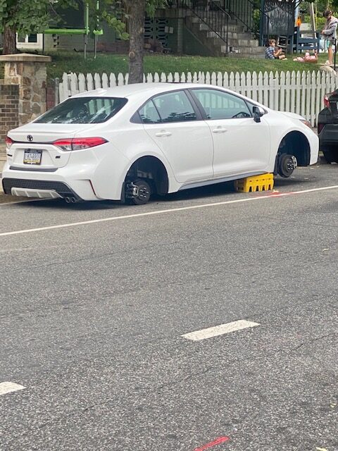 It had been 1 day since our last stolen wheels report(s). You can see some MPD suggestions on ways to prevent a Helluva Way to Wake Up here. Others victims have recommended Rimgard. You can read a Witness Describing a Wheel Theft here.