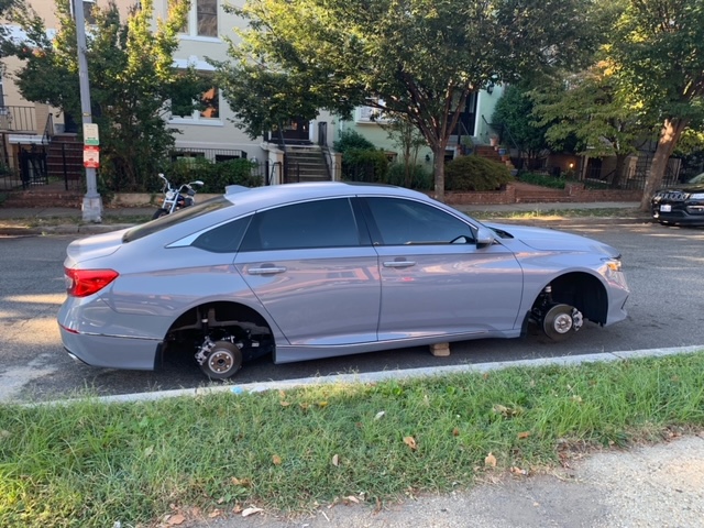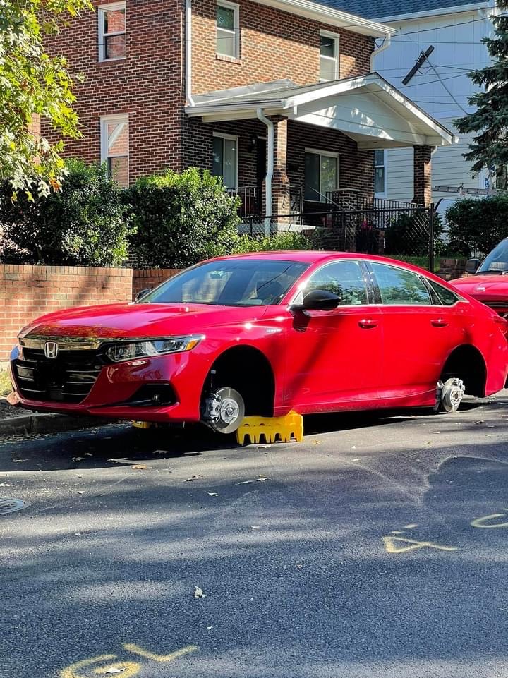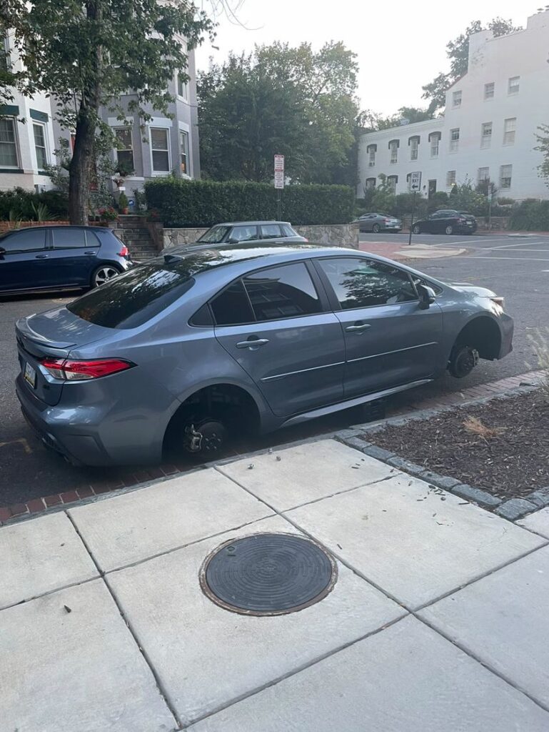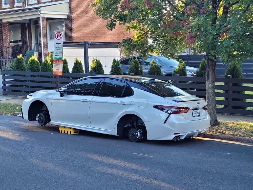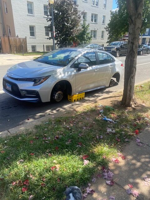 It had been 3 days since our last stolen wheels report(s). You can see some MPD suggestions on ways to prevent a Helluva Way to Wake Up here. Others victims have recommended Rimgard. You can read a Witness Describing a Wheel Theft here.