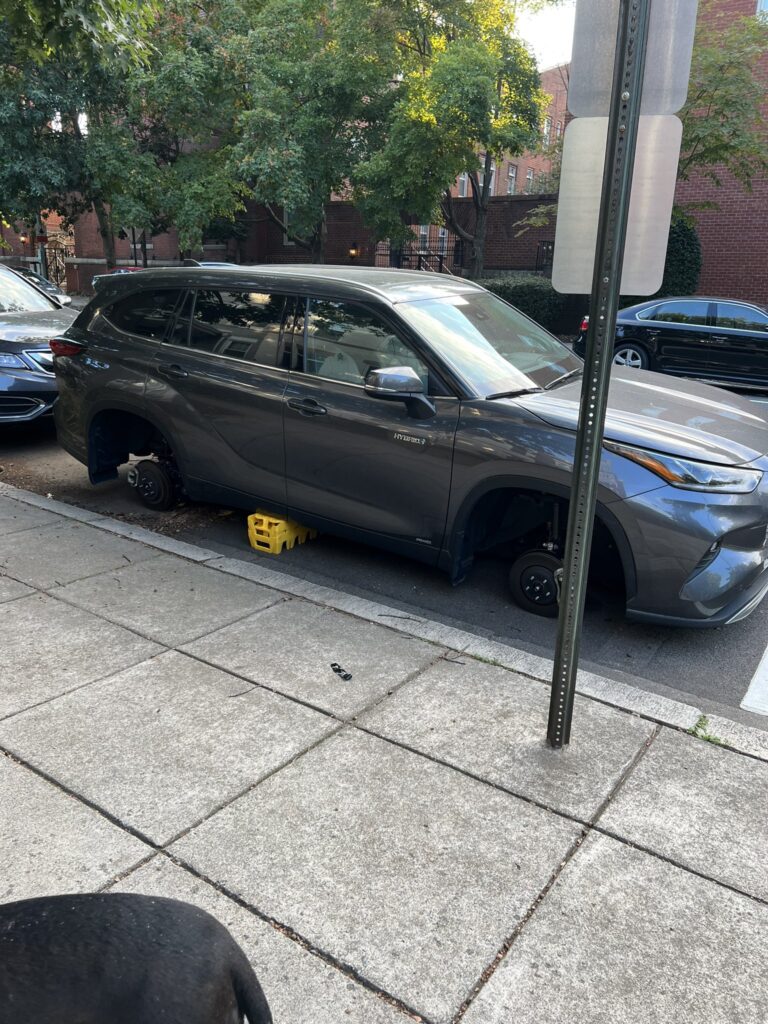 It had been 1 day since our last stolen wheels report(s). You can see some MPD suggestions on ways to prevent a Helluva Way to Wake Up here. Others victims have recommended Rimgard. You can read a Witness Describing a Wheel Theft here.