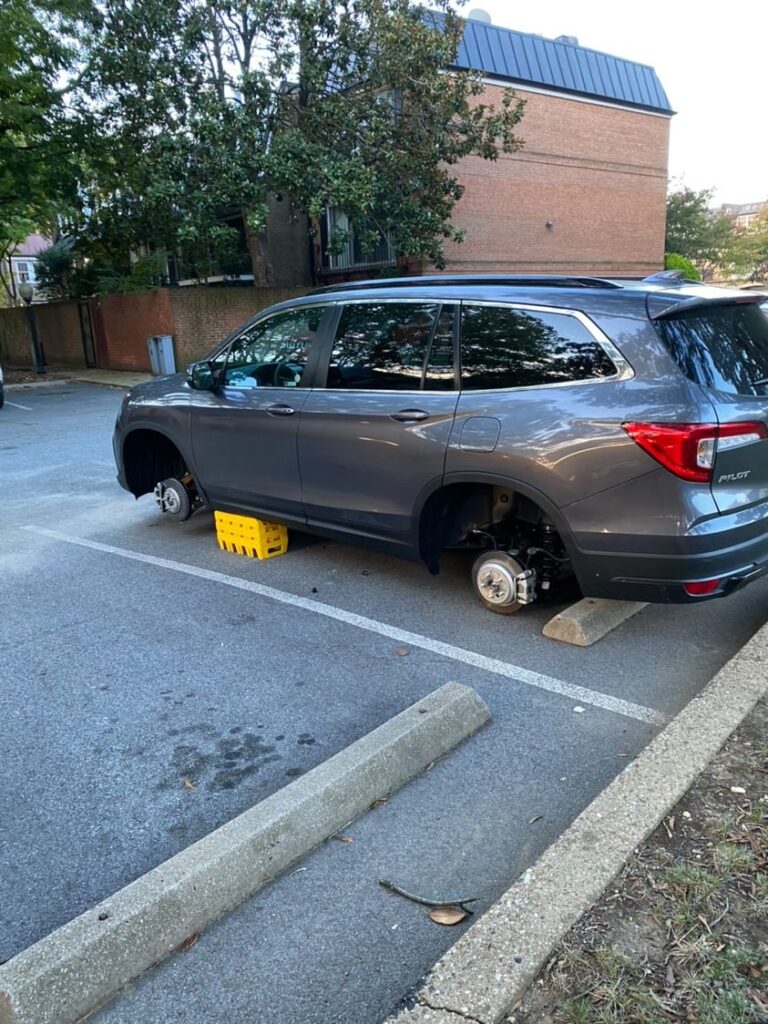 It had been 8 days since our last stolen wheels report(s). You can see some MPD suggestions on ways to prevent a Helluva Way to Wake Up here. Others victims have recommended Rimgard. You can read a Witness Describing a Wheel Theft here.