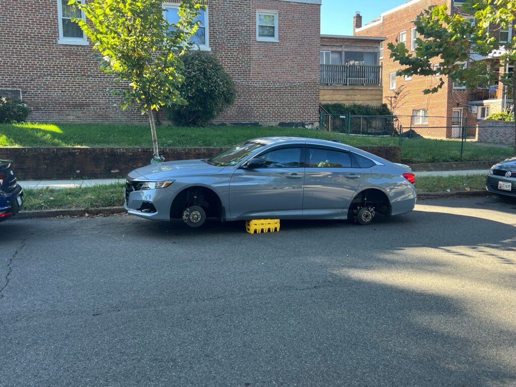 It had been 7 days since our last stolen wheels report(s). You can see some MPD suggestions on ways to prevent a Helluva Way to Wake Up here. Others victims have recommended Rimgard. You can read a Witness Describing a Wheel Theft here.