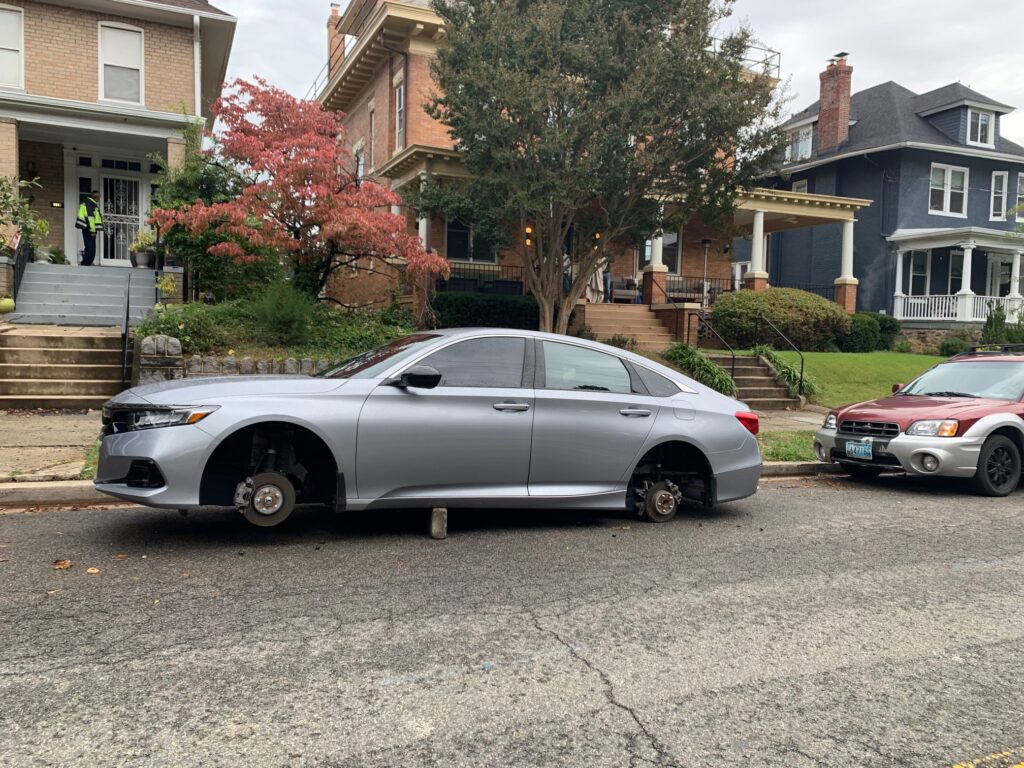 It had been 3 days since our last stolen wheels report(s). You can see some MPD suggestions on ways to prevent a Helluva Way to Wake Up here. Others victims have recommended Rimgard. You can read a Witness Describing a Wheel Theft here.