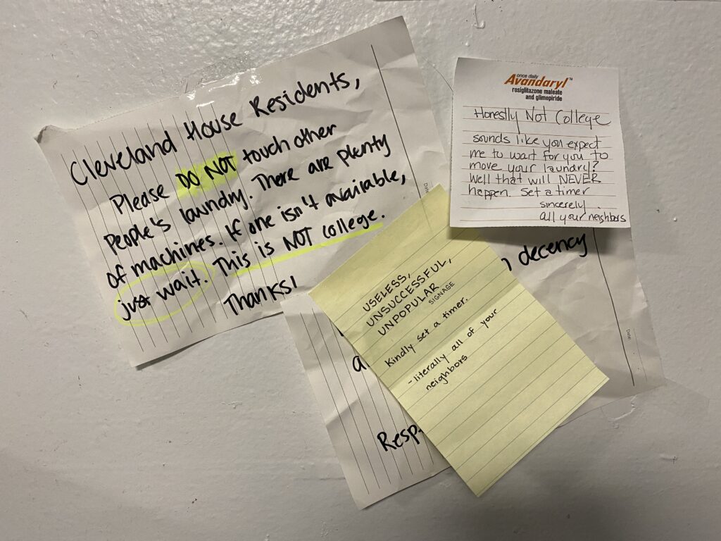 Thanks to a reader for sending these gems: “This is from a building where 1/3 of the machines seem to be out of order at any one time and the laundry room feels surprisingly small for a large building.”
