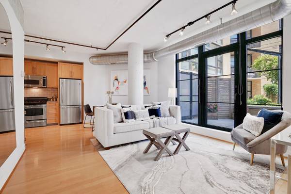 Modern and bright 2-bedroom, 1 bath condo. Efficient layout, high ceilings and floor to ceiling windows lend to a spacious feel. Unit also features a large (almost 300 square foot) OUTDOOR PRIVATE PATIO, perfect for outdoor living and entertaining.