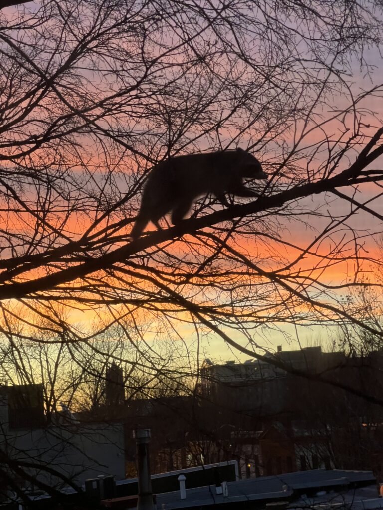 There was two juvenile (I think) raccoons in the tree next to me. It wasn’t dark yet and they looked young/didn’t seem to be scared of me or my (barking) dog so I wasn’t sure what – if anything- I should do. I’ve googled and it seems like they should be hibernating but they also didn’t seem to be aggressive (or rabid).