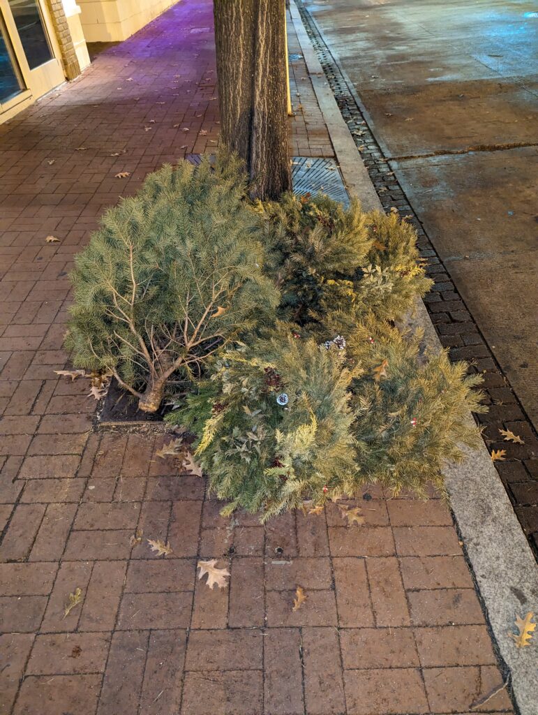Trees and greenery are typically collected by DPW crews within five days of set out. After March 3, composting is not guaranteed for trees and greenery because they are then collected with residential trash. Using the tree and greenery collection service during this eight-week period will reduce the amount of such materials in landfills.