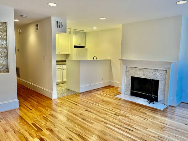 Best location! 2 blocks north of Dupont Circle Metro, separate entrance ground floor, recently renovated, junior 1 bedroom, good western light, hardwood floors, new appliances, central AC, w/d in unit, fireplace, one-year lease @$2100/month plus electric (water included), off-street parking available for $200/month. No smoking. No pets. Available immediately.”