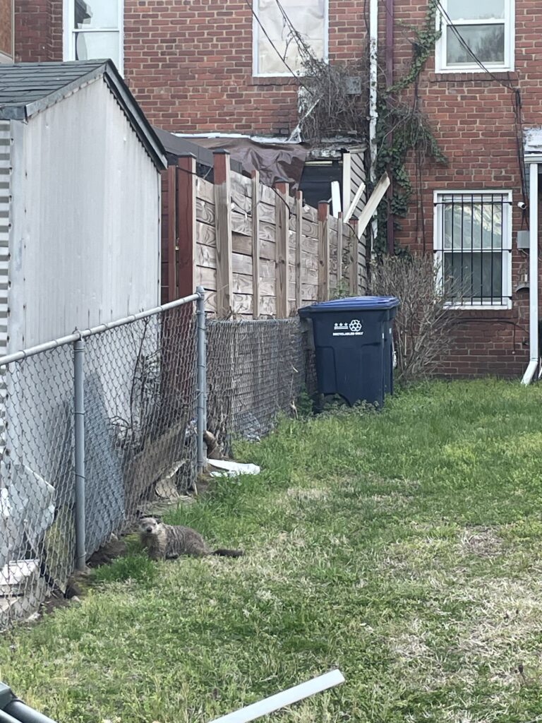 Spotted this little guy on a yard while walking my dog around the Kingman Park/Rosedale community garden. He disappeared through a hole on the ground in the yard!”
