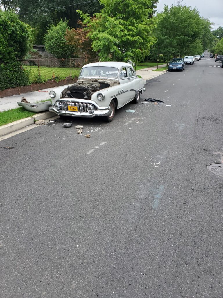 M. writes: “Someone(s?) stole it, moved it a couple blocks and then just absolutely trashed it. It made me smile every time I walked past it and I feel awful for the owner (who had found it by the time i walked past)–earlier pic from happier times included….”