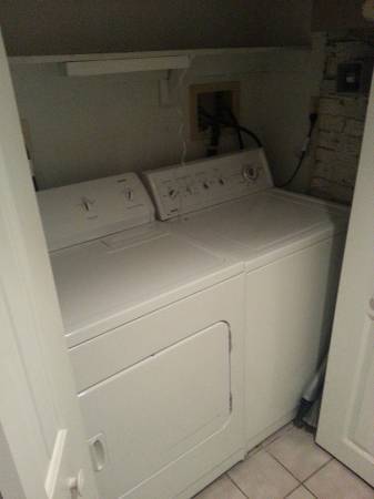 Live on one of the prettiest, best-located streets in the District. Quiet, tree-lined, brick sidewalks, in the heart of vibrant Dupont. Large 975-square-foot modern English basement in beautiful, well-maintained Victorian rowhouse. Bay front, exposed brick, distinctive architectural arches throughout. Great layout, particularly well-suited for a couple of roommates. (The two bedrooms are fairly equivalent and spaced for privacy. Both accommodate queen-sized beds.) Wall-to-wall Berber carpeting; ceramic tile in kitchen, bath and entry. Good-sized kitchen has twin full-sized refrigerators, gas stove, dishwasher, microwave, garbage disposal. Convenient laundry niche with side-by-side full-sized washer and full-sized dryer. Excellent built-in lighting, air conditioning units.