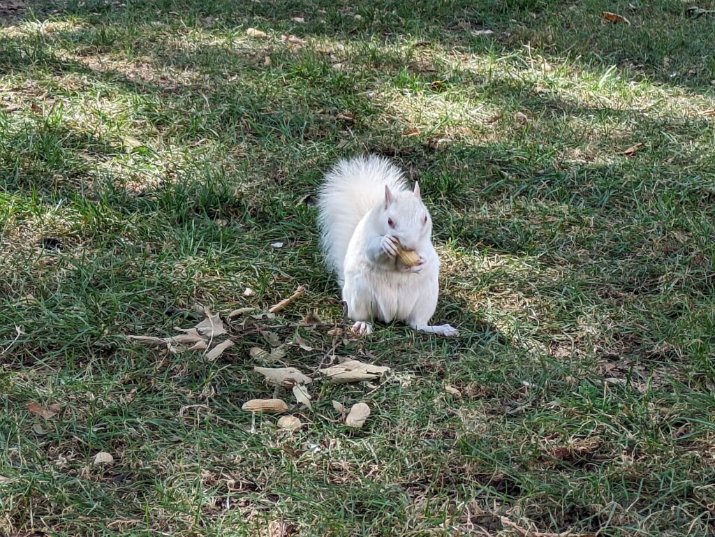 Thanks to Craig for sending: “I saw not one, but TWO albino squirrels on the mall”