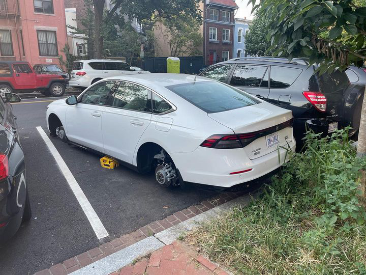It had been 3 days since our last stolen wheels report(s). You can see some MPD suggestions on ways to prevent a Helluva Way to Wake Up here.  Others victims have recommended Rimgard. You can read a Witness Describing a Wheel Theft here.