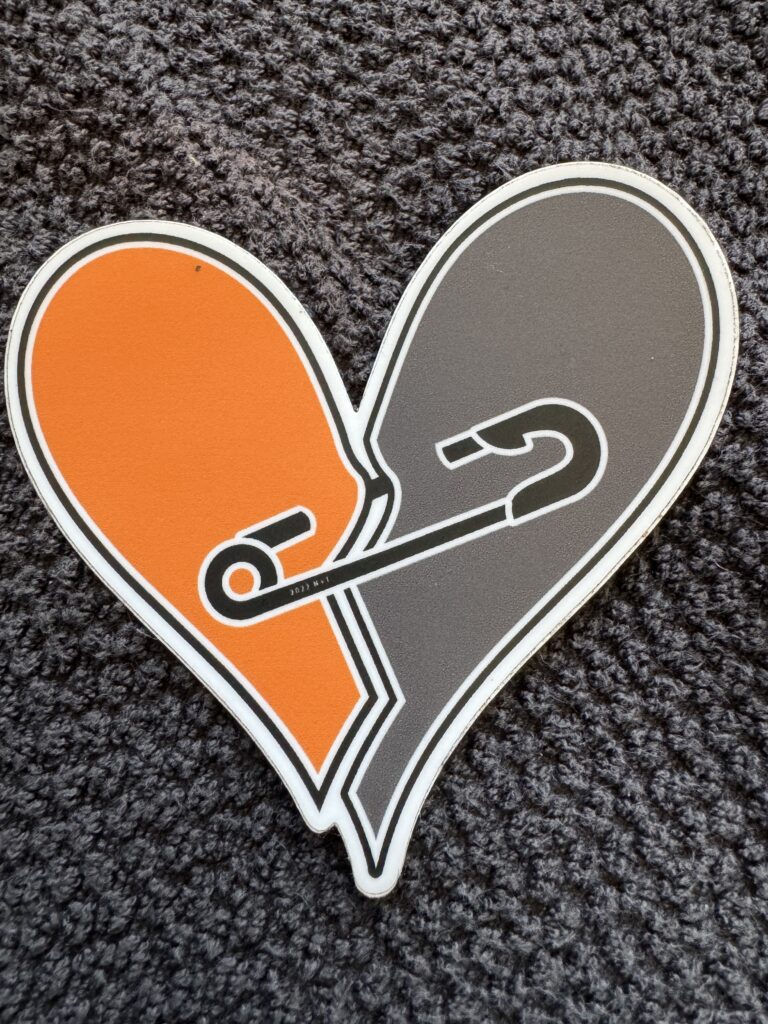 You gave me a sticker of a heart, clothes pinned together. I was hoping it had your info on back, but I was disappointed.