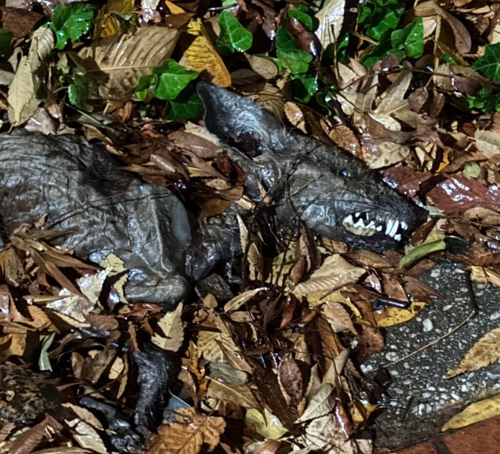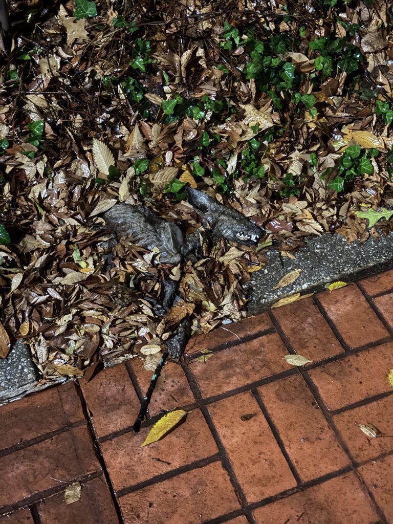 Trigger warning, dead animal. No blood. Dog sniffed it out while walking behind the new soccer field at UDC. No idea what it is. Maybe a coyote?”