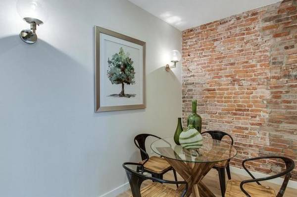 Light filled open floor plan provides graceful flow between dining, kitchen, living and outdoor spaces featuring original exposed brick walls, 9’ ceilings, hardwood floors, all elegantly highlighted with recessed and accent LED lighting.