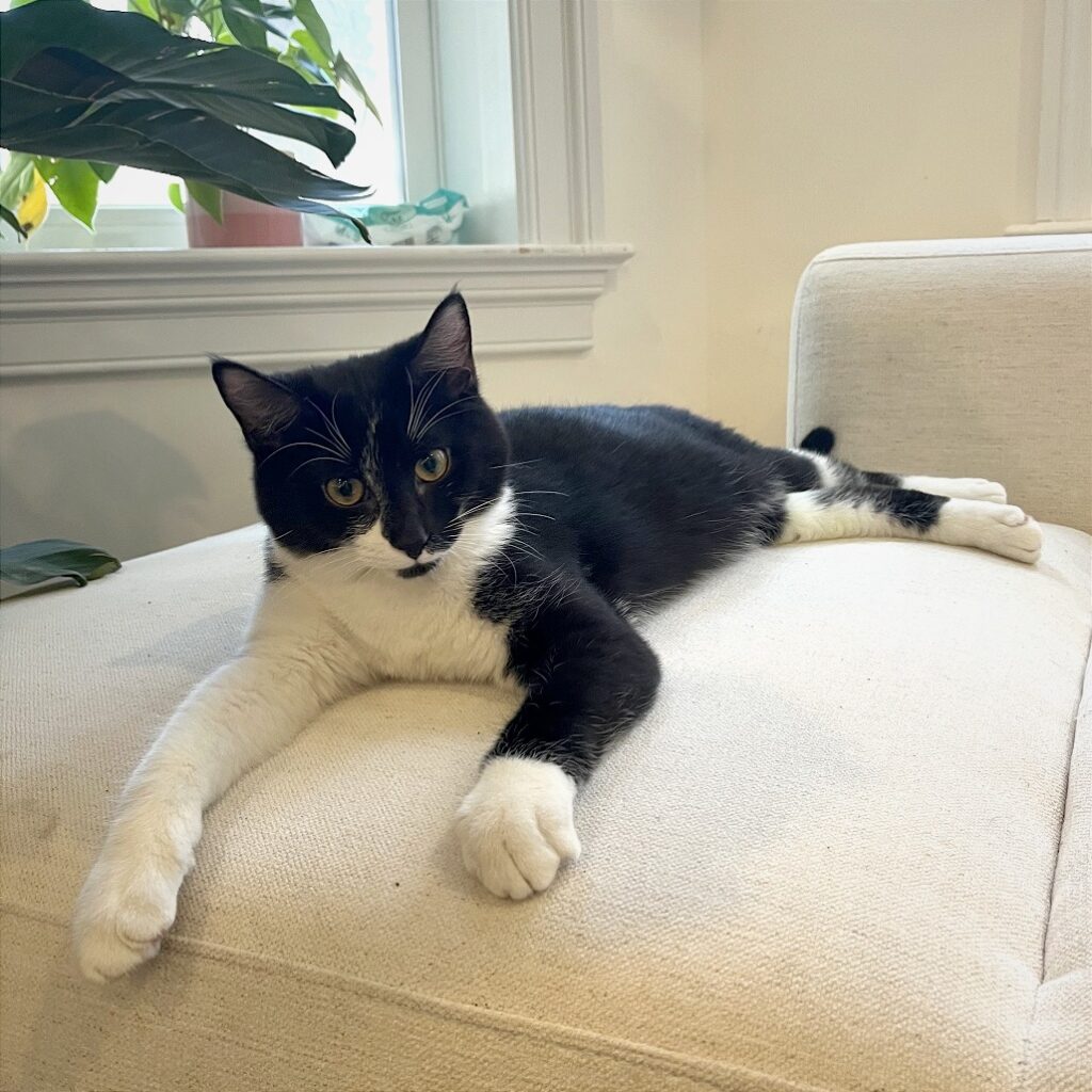 High-energy and always ready for fun, Chris is the stuntman of the duo. Whether he’s zooming after a toy mouse, wrestling with a cat buddy, or snuggling up on your feet after a long day, this guy is all about action and affection. He’s a total socialite, making best friends with every cat and human he meets. Kids? He loves them! Other cats? Instant BFFs. Give him a toy and some attention, and he’ll be the happiest superstar in the house.