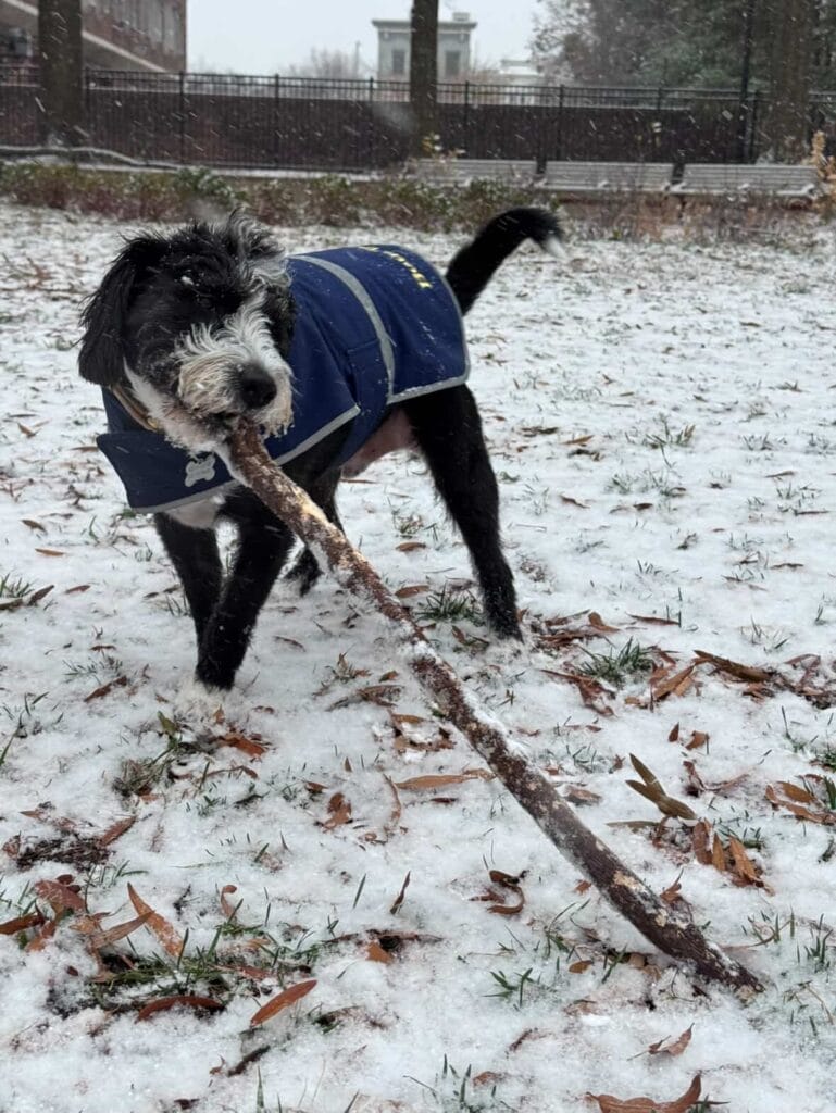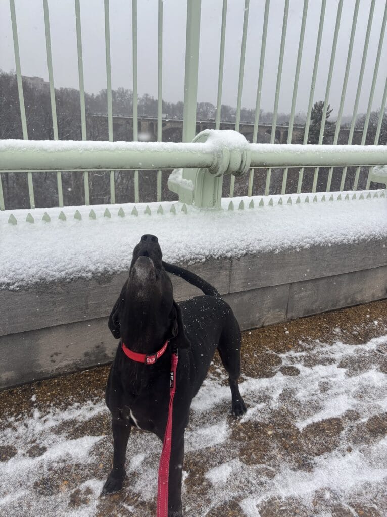 “Benny who was so excited by the snow this morning he was howling! We live in Woodley Park”