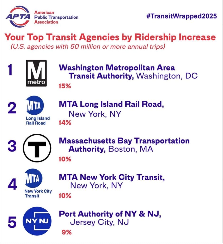 Transit Wrapped 2025 is the latest available data from fall 2025 to fall 2024. See our free 2025 Fact Book to learn more about the public transit industry”