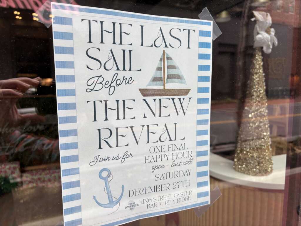 King Street Oyster Bar only opened here back in November 2023. Alas they have already “sailed away”: