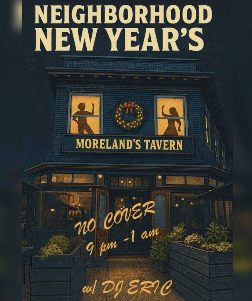 “If you’re staying local this year… make it a real neighborhood celebration. 🥂 Walk over, toast with friends, and dance into the New Year with us at Moreland’s! 🎧 DJ Eric at 9PM ✅ No cover ”