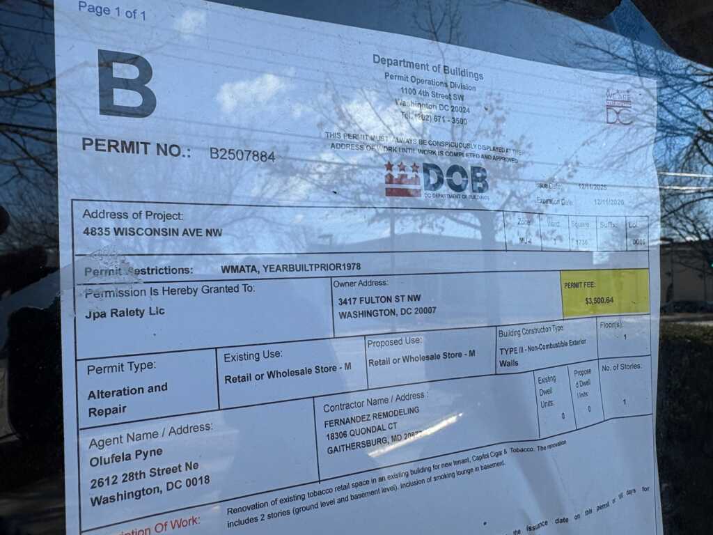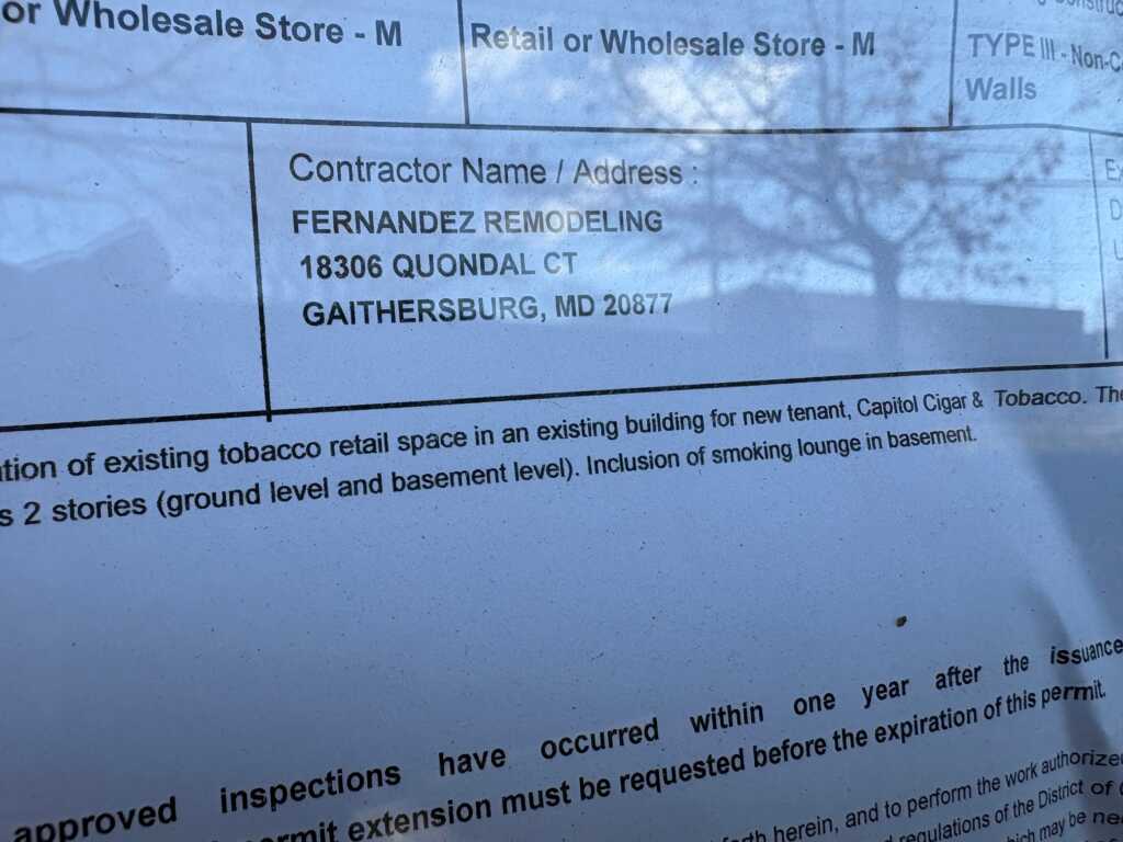 Cigars are dead, long live cigars! Wild. The permits in the window now reveal Capitol Cigar and Tobacco is coming: