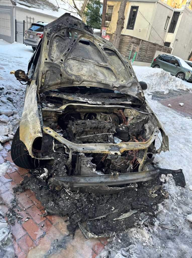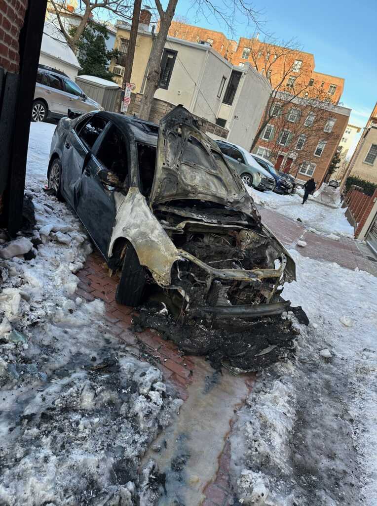“Car got stuck in the snow and floored it until the engine exploded. Alley between q and Corcoran and 16th and 17th.”