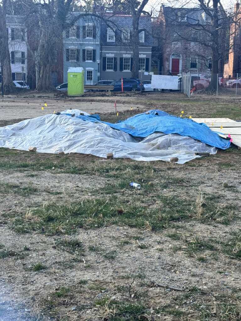 Update to “What’s Up w/ Volta Park: Human Remains Left Out in the Open”: “They went over and put tarps on the piles. They also have little yellow flags around them now.