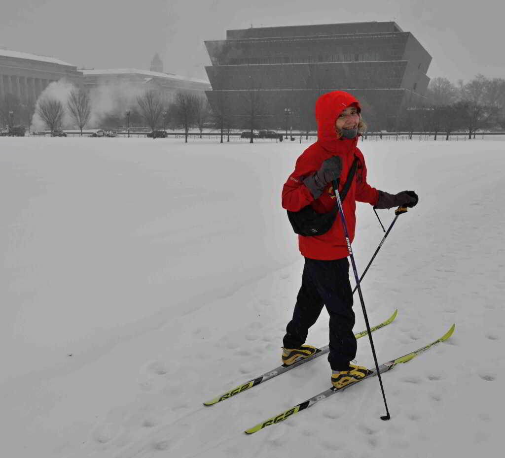 Sometime around 11:15am, others showed up on the NW side of the monument, unaware of the cancellation/declared winner … and persevered on with the fluffy dry snow:
