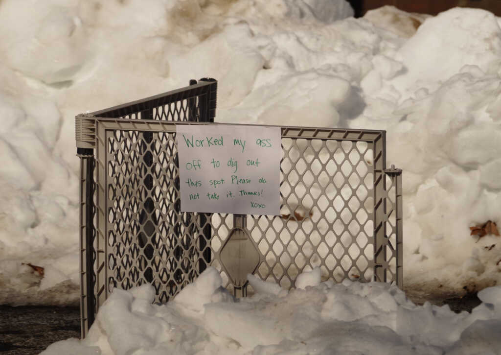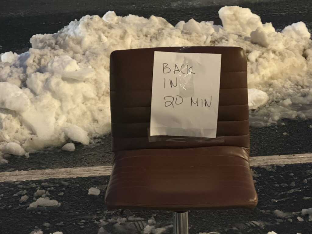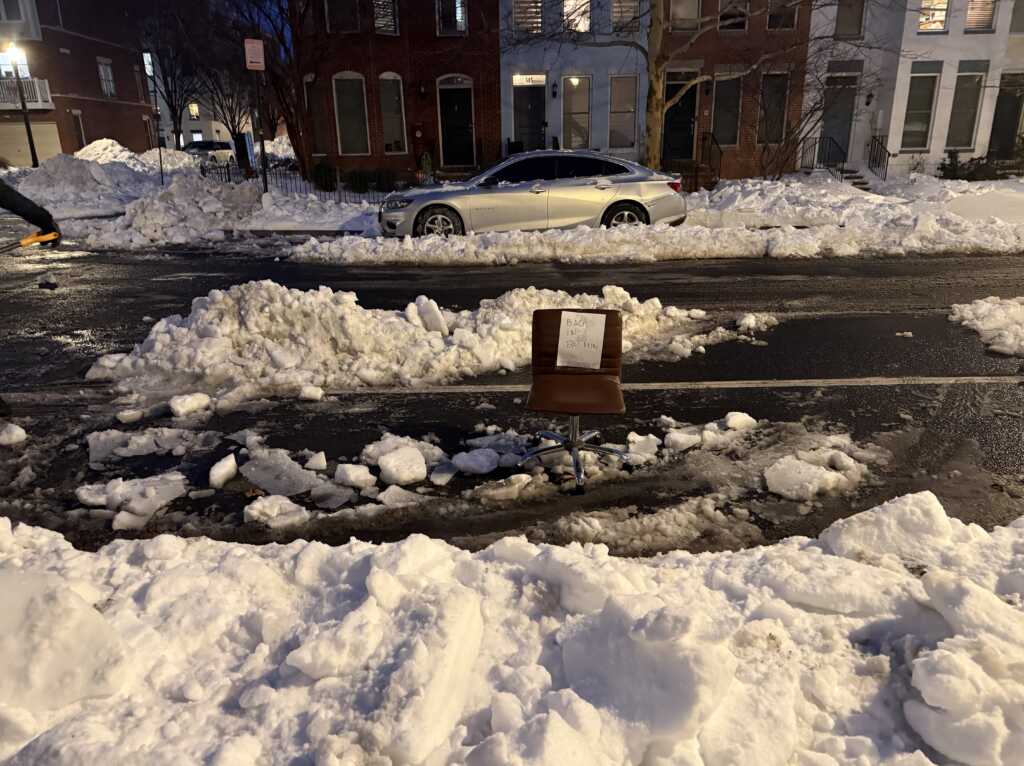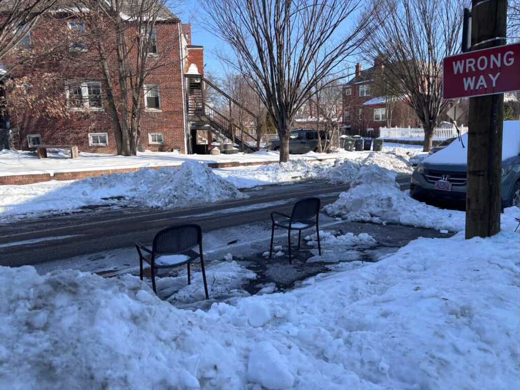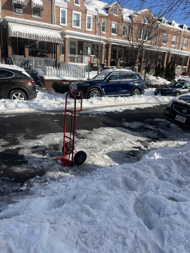 Thank to Derek for sending above: “Getting wild up in Columbia heights with people defending shoveled parking spots 😬”