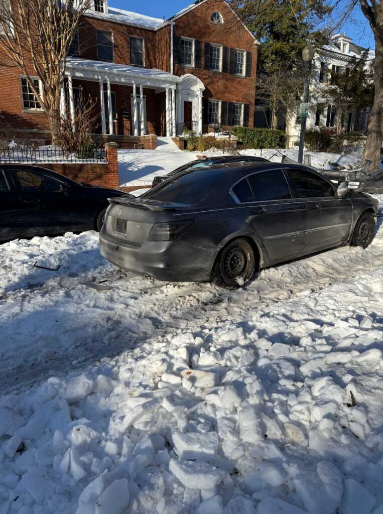 Charlie also shares a shot: “The ice-pocalypse brought 28th ST NW an abandoned car! It’s only been 24 hrs but between our street not being plowed, at all, before, now we are thinking perhaps we see the pavement again in April?”