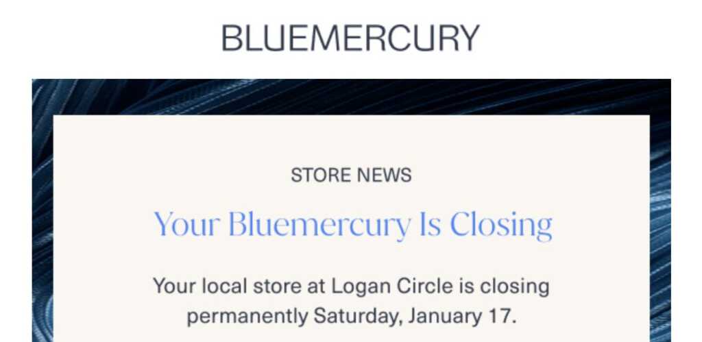 “The Bluemercury on P Street is closing Saturday. The lovely ladies in the store told me that as their packing stuff up”