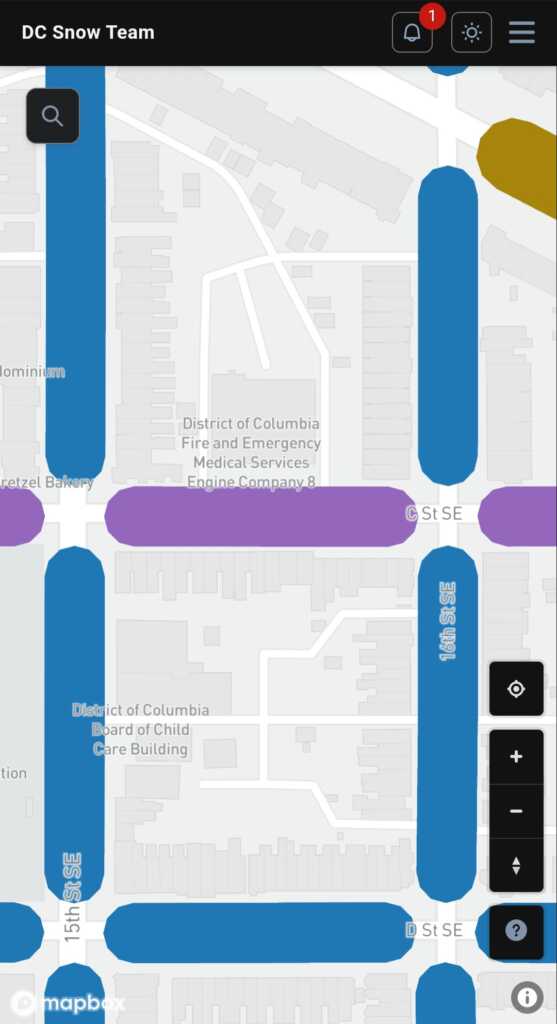 This is in front of Fire Station 8, on C SE between 15 and 16. This street was marked plowed this morning, and here is an ambulance *with chains* struggling to make it down the block.“