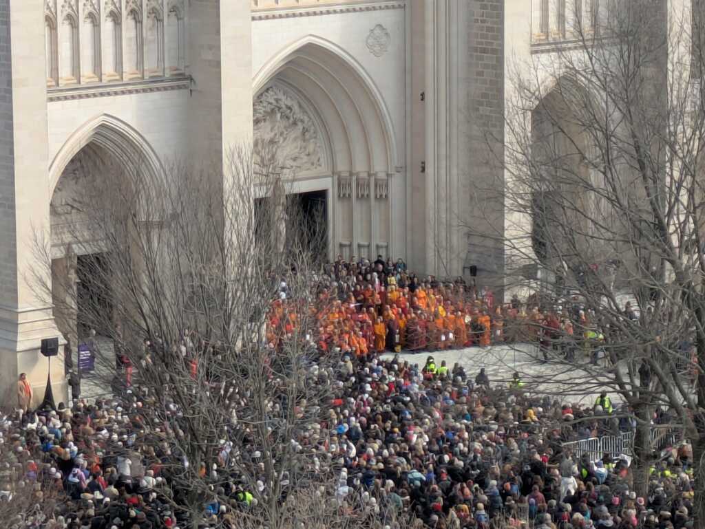 “Monks and crowd gathered outside the West Front of the National Cathedral, taken from a roof across the street. Easily 2500+ people, I’d guess.”